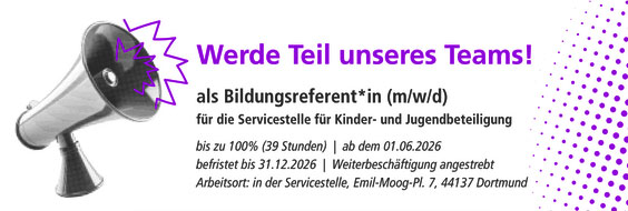 Arbeitsort: in der Servicestelle für Kinder- und Jugendbeteiligung, Emil-Moog-Platz 7, 44137 Dortmund